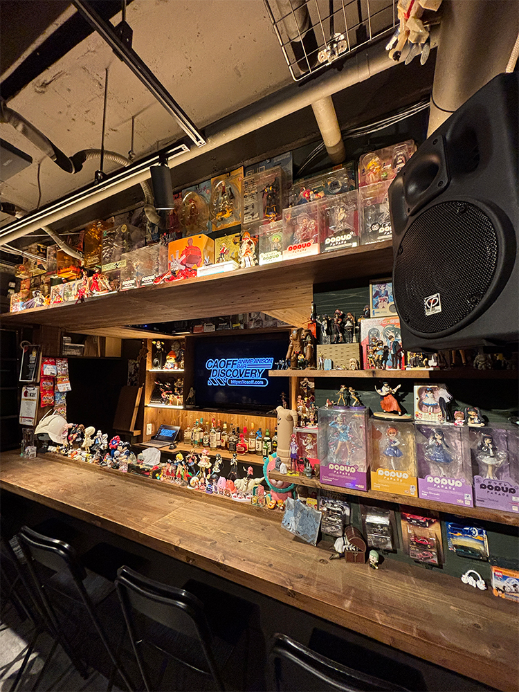 90年代後半から店主が集めた数多くのフィギュアに囲まれながら、お好きなお酒を楽しんでね!お一人様はもちろん、ご友人同士でのご来店も大歓迎だよ!